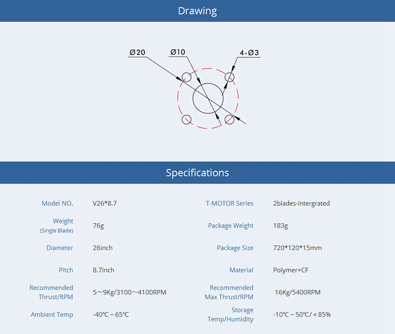 Pair of T-Motor Carbon Fiber Propeller 26x8.7" RC Airplane Propeller CC CCW For VTOL (V26x8.7)
