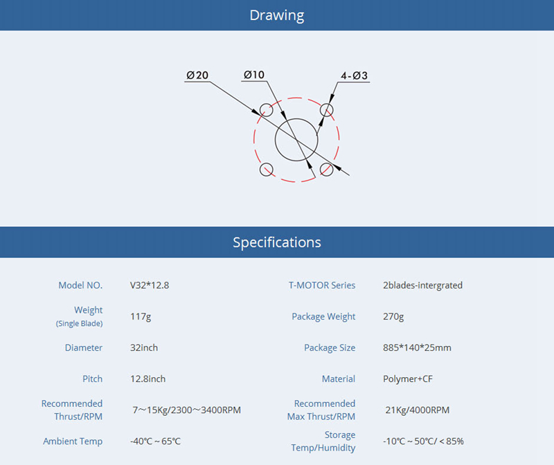 Pair of T-Motor Carbon Fiber Propeller 32x12.8" RC Airplane Propeller CC CCW For VTOL (V32x12.8)