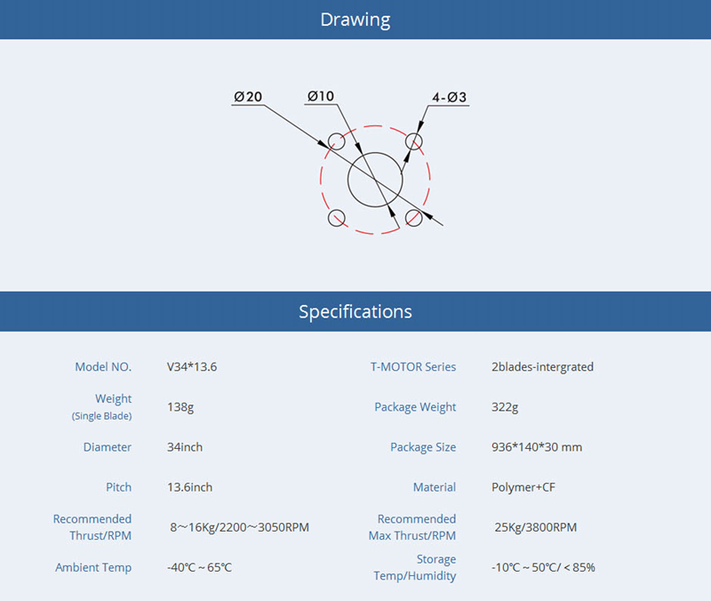 Pair of T-Motor Carbon Fiber Propeller 34x13.6" RC Airplane Propeller CC CCW For VTOL (V34x13.6)