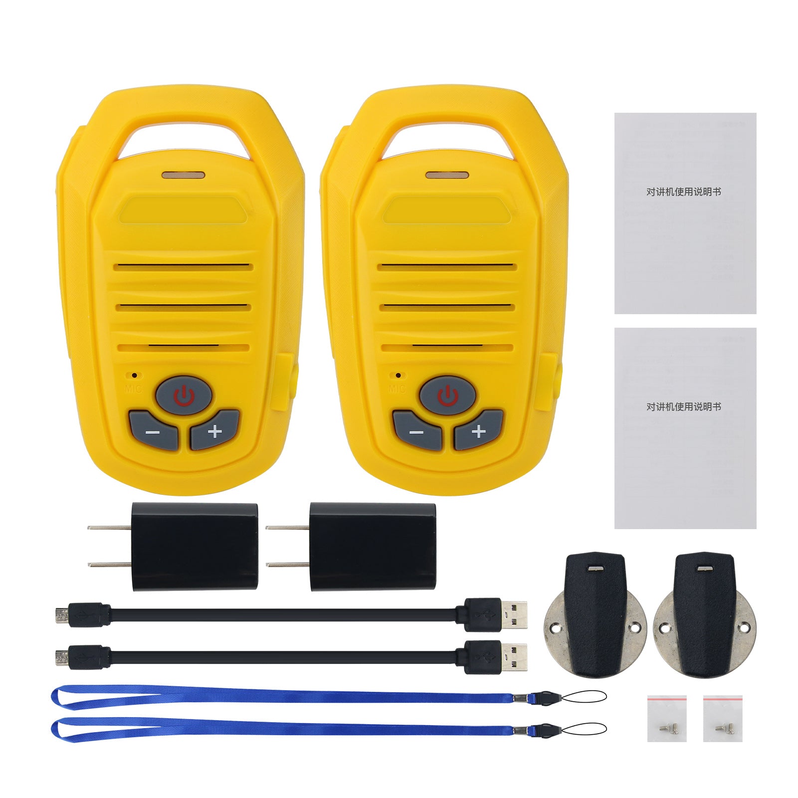 Pair of Yellow YI-639 400-470MHz UHF Mini Walkie Talkie 2KM 2W Analog Handheld Radio Support Timeout Timer