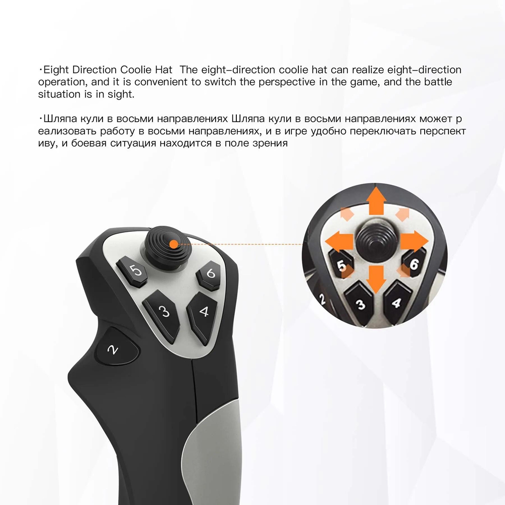 - Three axes (X/Y/RZ axes)+throttle valve+12 programmable keys+eight-direction coolie cap, these functional configurations will become the needs of your game.