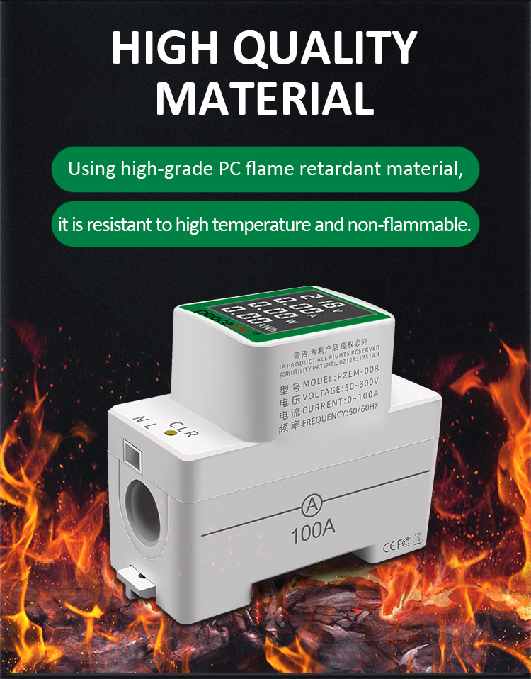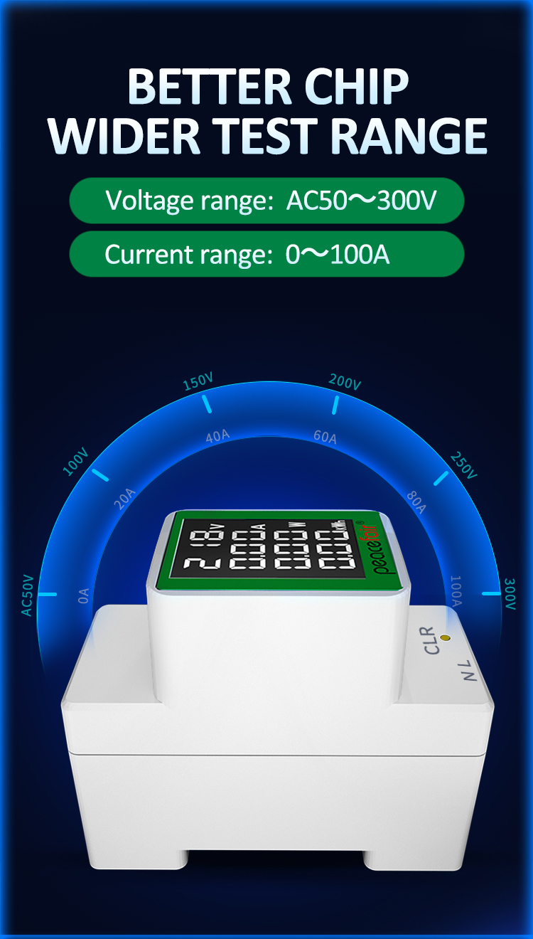 PZEM-008 50-300V 100A AC DIN Rail Meter DIN Rail Power Meter for Voltage Current Power and Energy