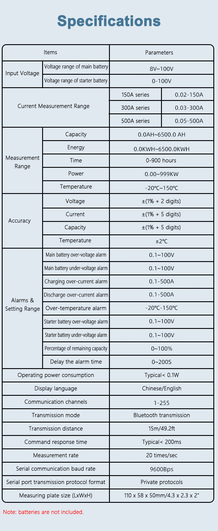 QLeTEK KL150A 100V 150A Bluetooth Smart Battery Monitor Coulometer Voltmeter Voltage Current Meter
