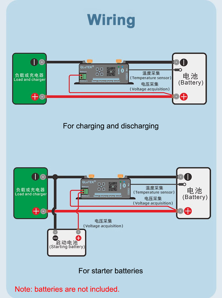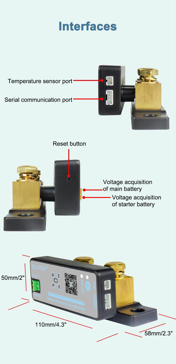 QLeTEK KL300A 100V 300A Bluetooth Smart Battery Monitor Coulometer Voltmeter Voltage Current Meter