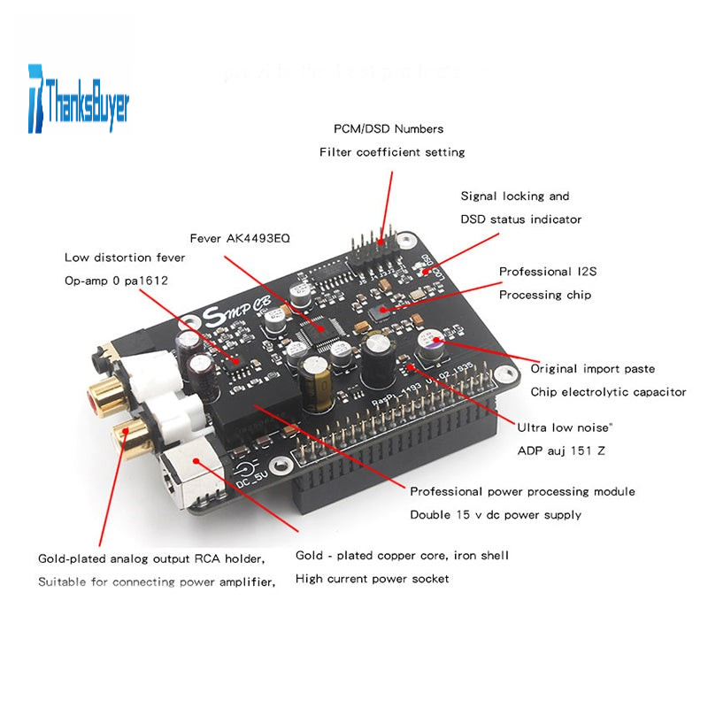 1. Raspberry Pi dedicated AK4493 decoder board, support 32BIT/384KHZ DSD128.