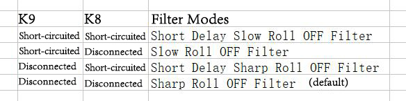 4. Set the filter mode through K8 and K9:
