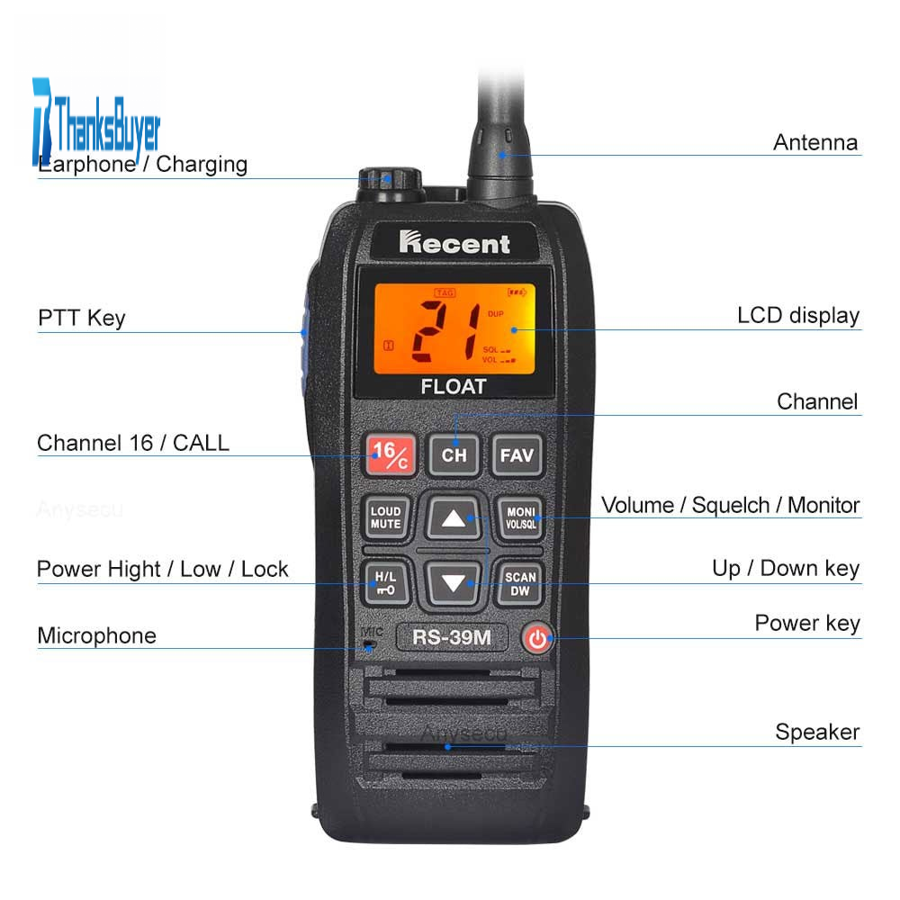 Recent RS-39M-USB 6W Float VHF Marine Radio Walkie Talkie Handheld Transceiver w/ Programming Cable