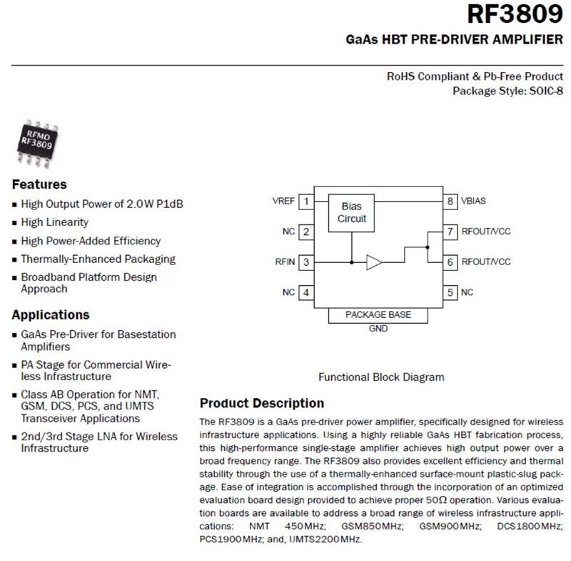 RF3809 Broadband RF Power Amplifier Module 2W High Frequency (2W 0.8-1GHZ)