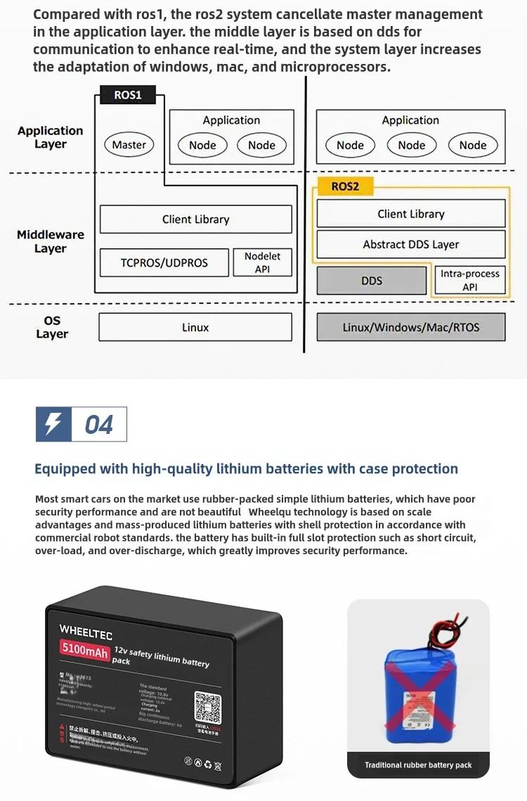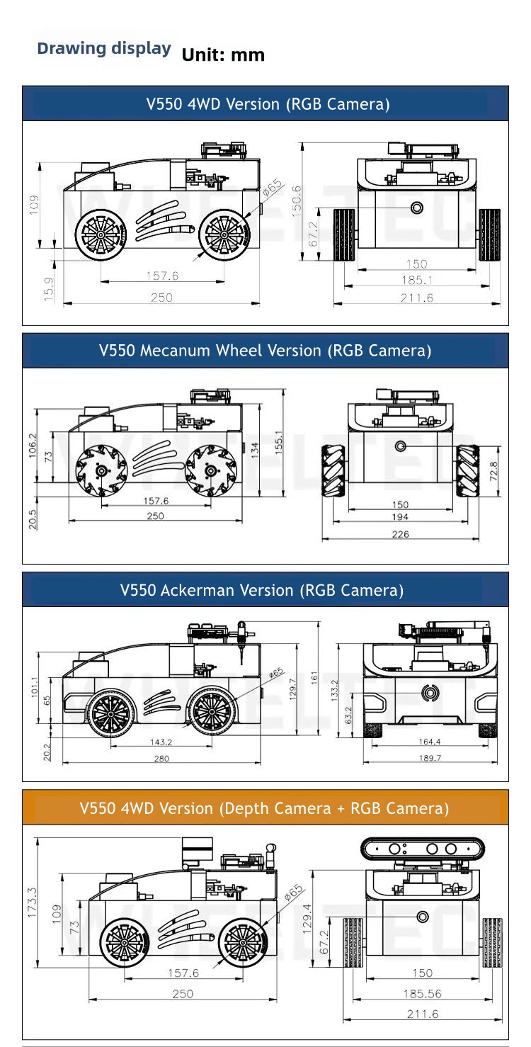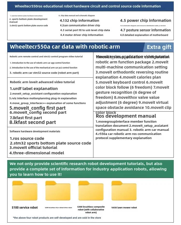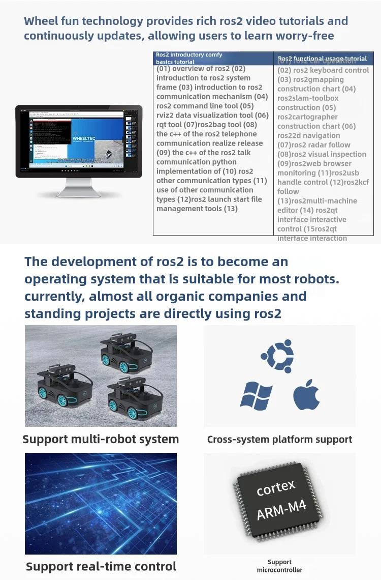 - The V550 ROS2 educational robot is a product launched based on the LubanCat series for ROS education scenarios. Through mature industrial design, it achieves a balance between simple appearance and easy development. Equipped with the RK3566 chip based LubanCat1S development board, it can meet the needs of ARM development and ROS beginner learning, and supports the long-term support version Humble system based on Ubuntu 22.04 ROS2. Equipped with the RK3588S chip based LubanCat4 development board, it can meet the needs of advanced robot development such as artificial intelligence. It provides ROS2 Humble Docker images that are ready to use.
