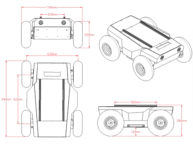 - Drive mode: four-wheel independent drive, four-wheel differential steering