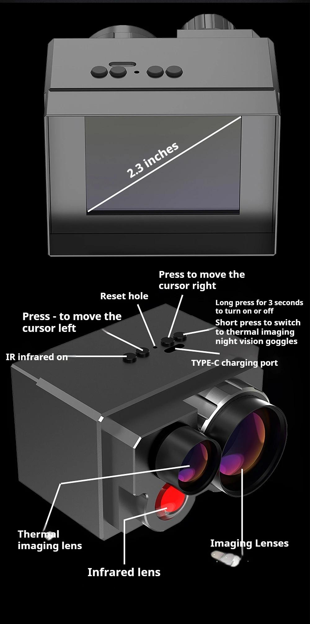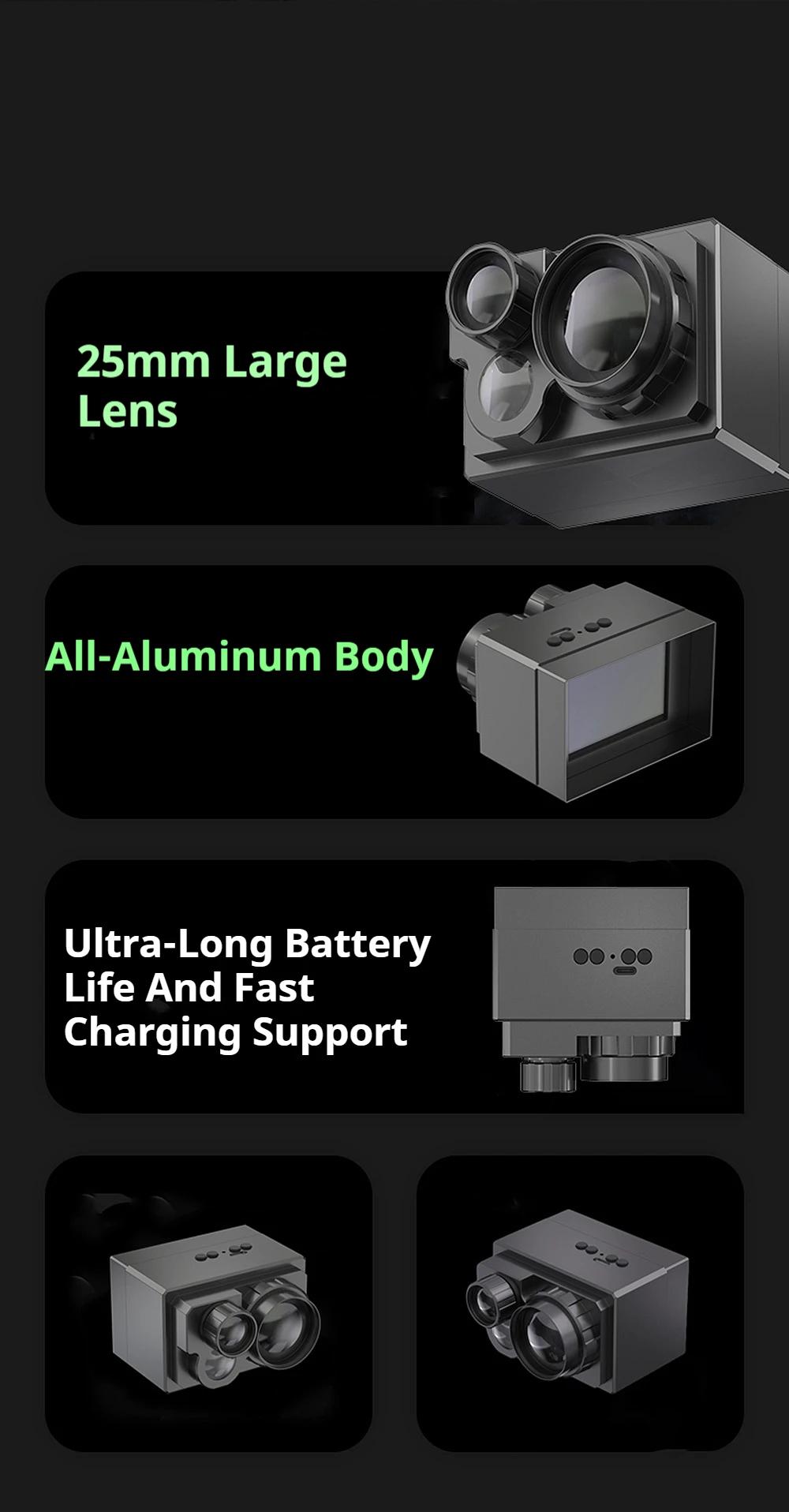 RY007 Low Light 4K HD IR Thermal Imaging Night Vision Telescope 25mm Lens IP54 Waterproof with 2.3-inch Screen