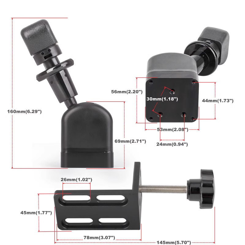 - Integrated fixture can be separated and use thickness is up to 55mm/2.2". The clamp can be installed on a desktop or stand