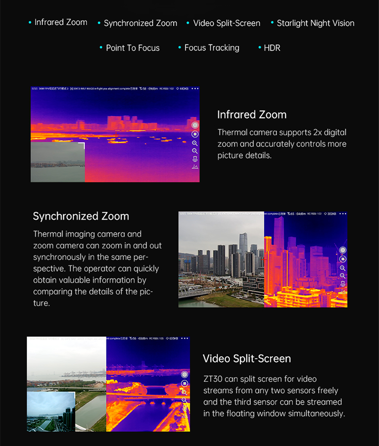SIYI ZT30 4K Zoom Camera Wide Angle Camera 1.2KM Laser Range Finder Thermal Imaging Camera for Drone