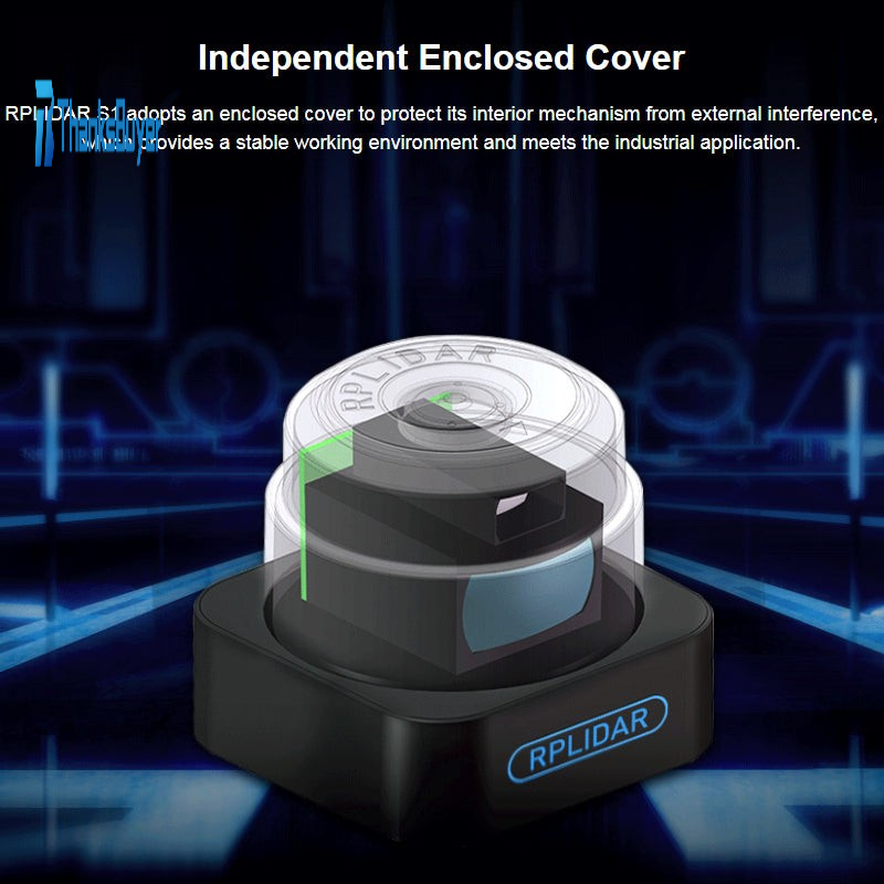 - Independent Enclosed Cover: RPLIDAR S1 adopts an enclosed cover to protect its interior mechanism from external interference, which provides a stable working environment and meets the industrial application.