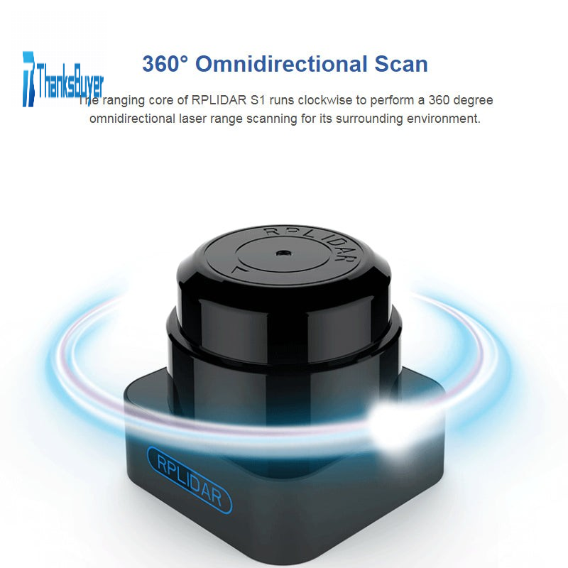 - 360° Omnidirectional Scan: The ranging core of RPLIDAR S1 runs clockwise to perform a 360 degree omnidirectional laser range scanning for its surrounding environment.