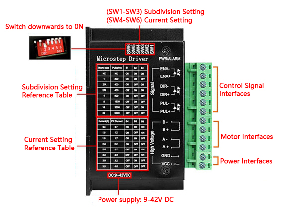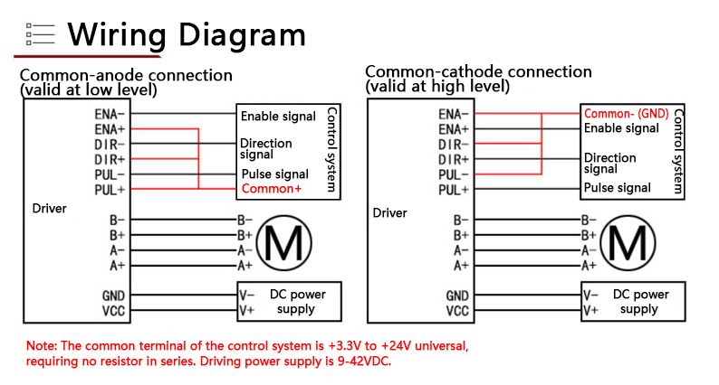 DIR+: The positive pole of the motor's forward rotation and reverse rotation. DIR-: The negative pole of the motor's forward rotation and reverse rotation