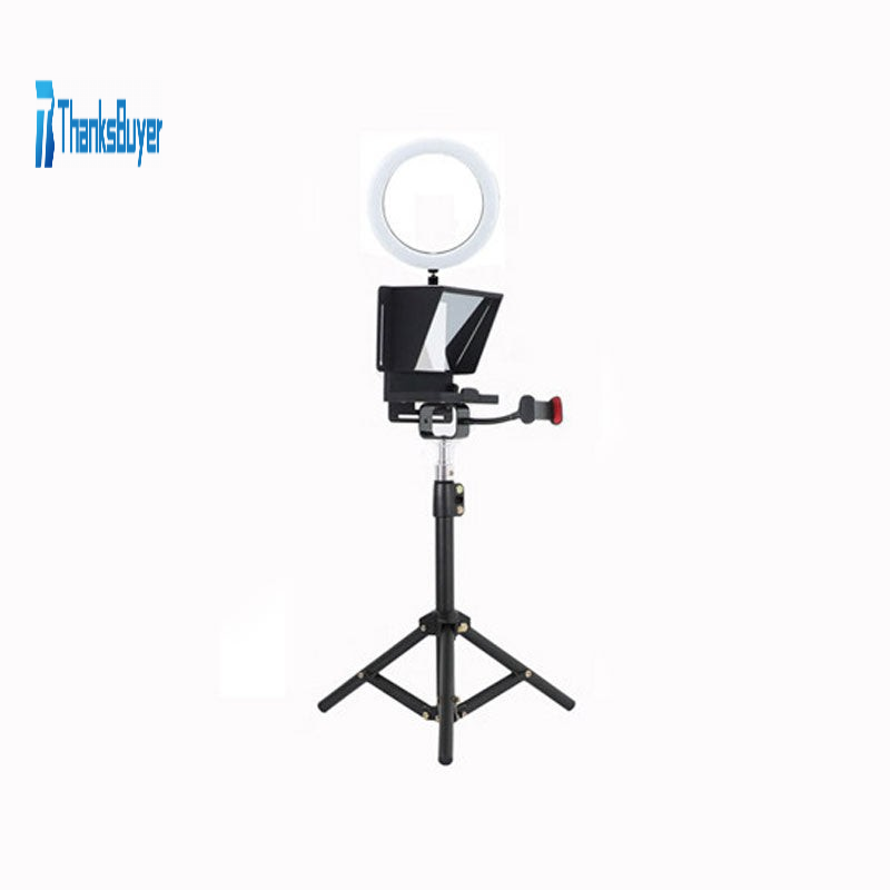 Smartphone Teleprompter Portable Camera Prompter with 16cm Fill Light Tripod Clip Plate for Live