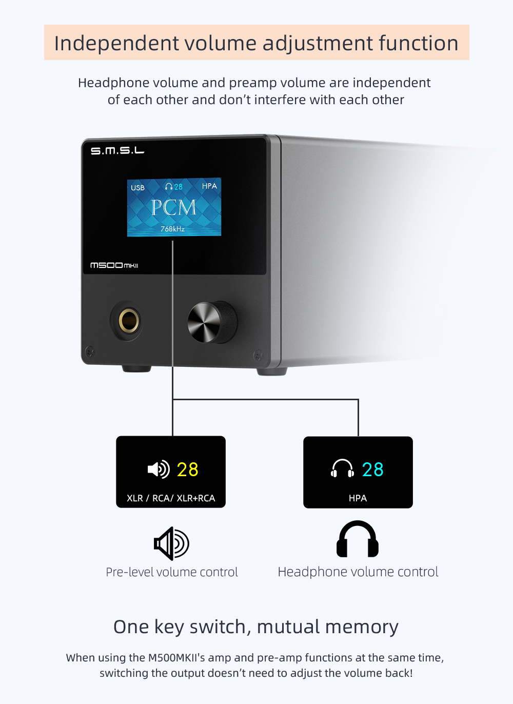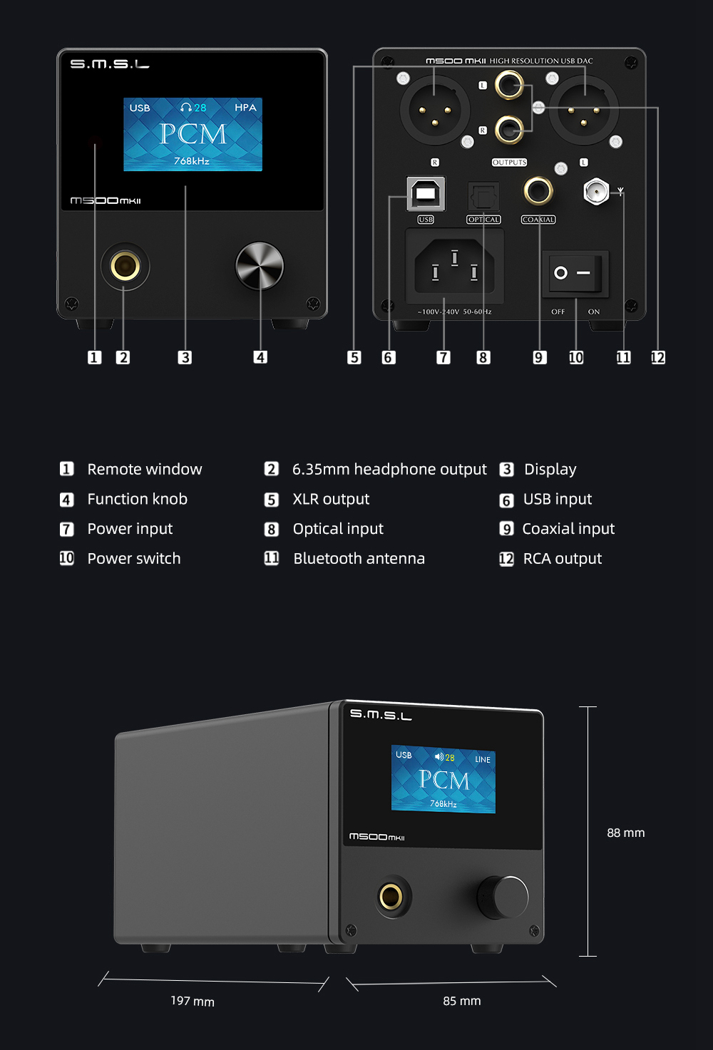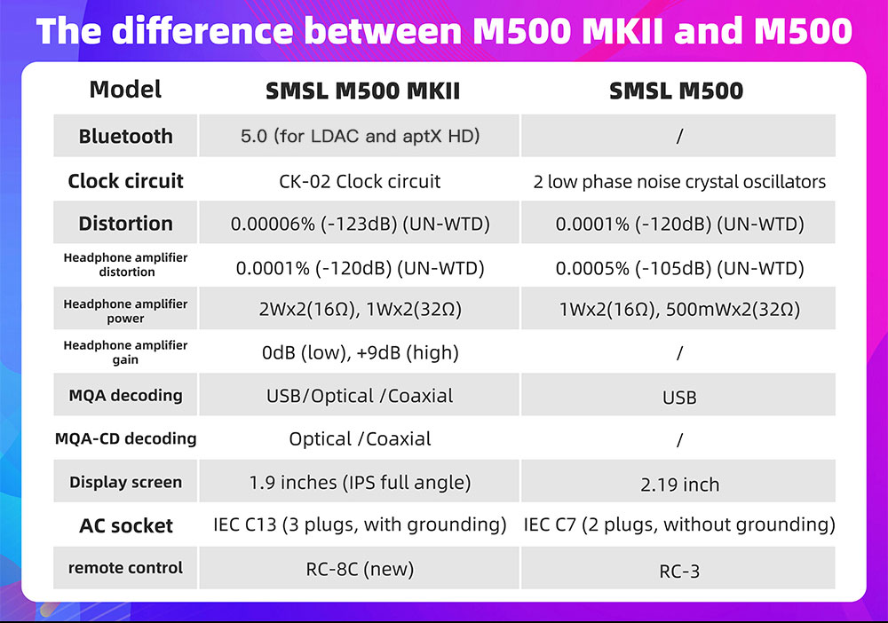 SMSL M500 MKII Bluetooth DAC Headphone Amplifier High Resolution USB DAC for Power Amp Speakers