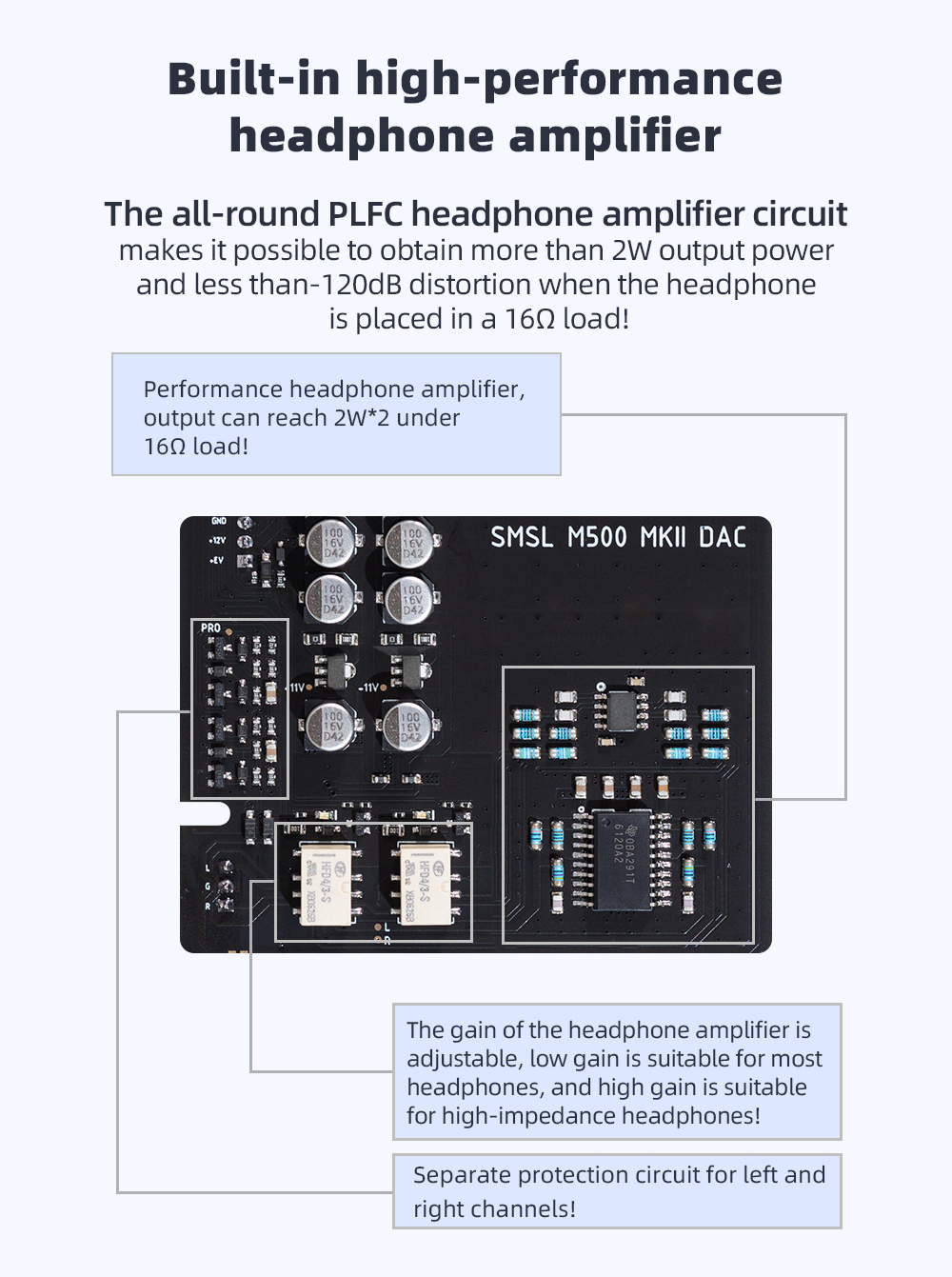 - The new PLFC headphone amplifier circuit enables the headphone to obtain more than 2Wrms output power and less than -120dB distortion under 16 Ω load