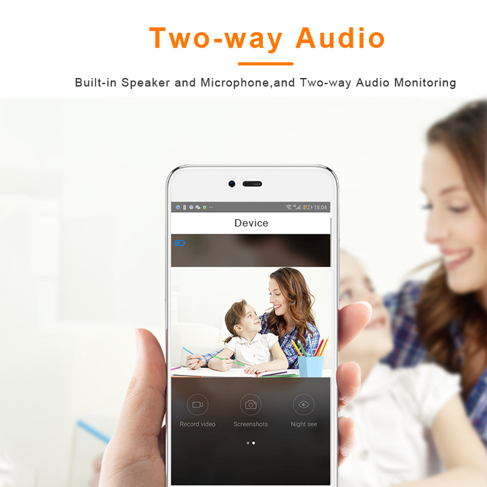 - One-way video call, two-way talking. Built-in speakers and high-definition noise-reduction microphone allow both parties to talk remotely. At the same time, it supports mobile phone APP to have remotely one-way video call, you can hear or see live situation. Support video, voice conversation, and taking photo.