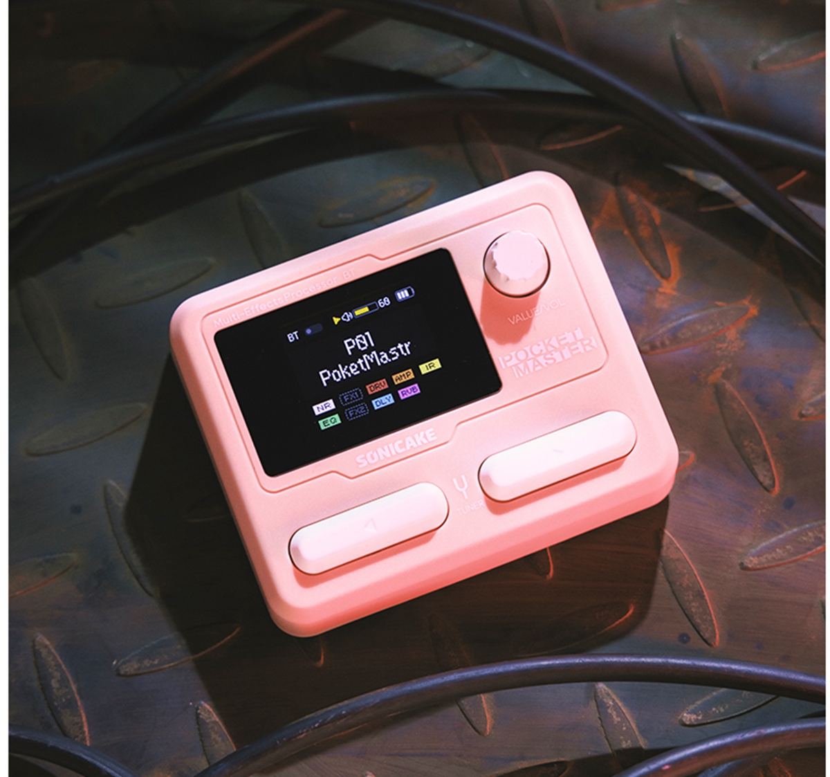 Sonicake Pocket Master (Coral Pink) Electric Guitar Comprehensive Multi-Effects Processor Bluetooth with Over 100 Effects