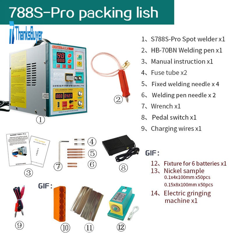 SUNKKO 788S-PRO 110V Spot Welder Welding Machine USB Charging Test For 18650 (with 71A Welder Pen)