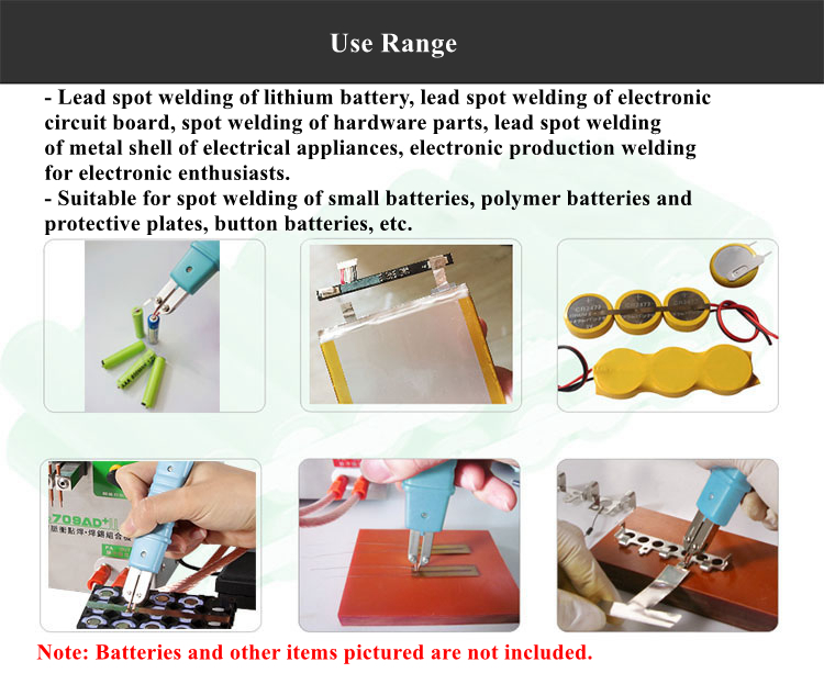 - Lead spot welding of lithium battery, lead spot welding of electronic circuit board, spot welding of hardware parts, lead spot welding of metal shell of electrical appliances, electronic production welding for electronic enthusiasts.