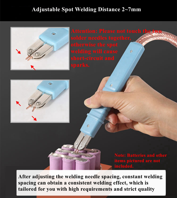 - The distance between the welding needles is adjustable in 2-7mm. Can be used for spot welding smaller hardware