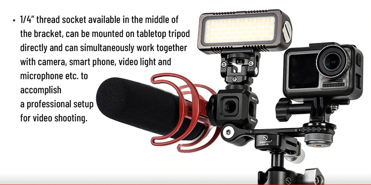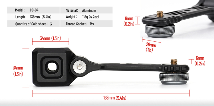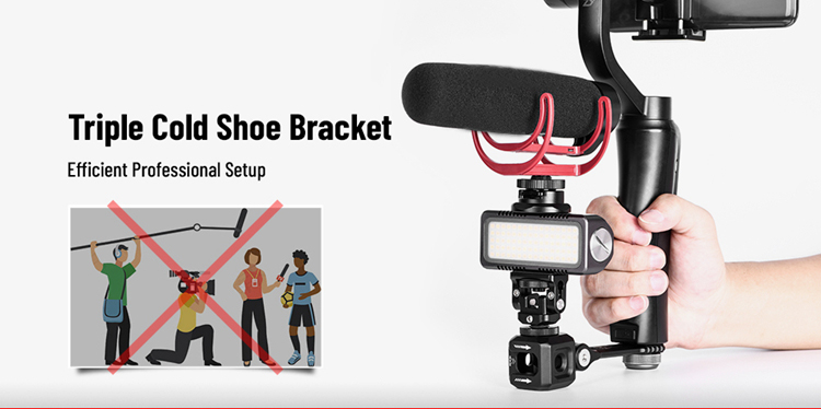 SUNWAYFOTO Triple Cold Shoe Bracket Mount CB-04 Perfect For Vlog Shooting Fit Video Light Microphone