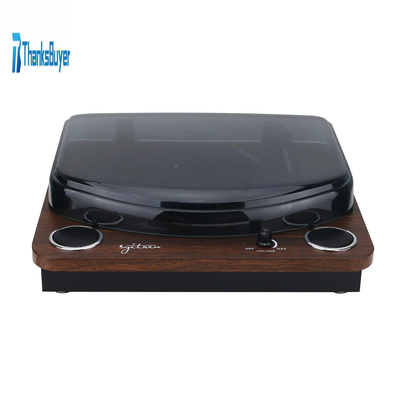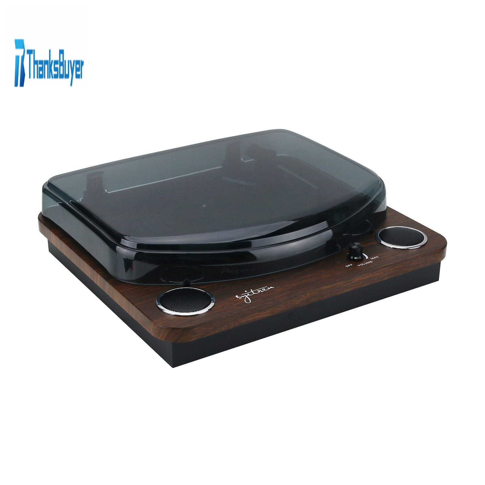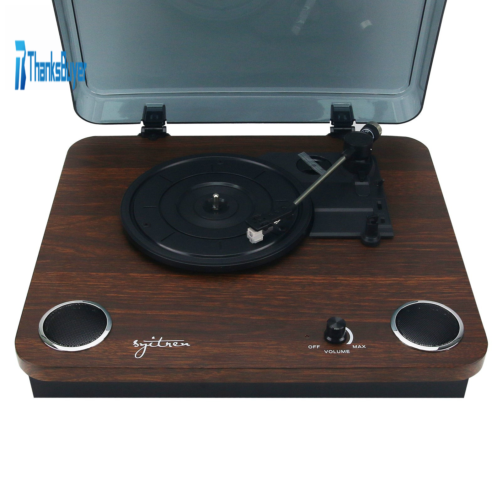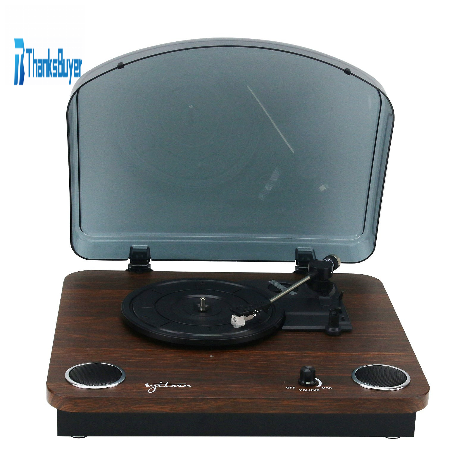- Transparent cover: The vulnerable part of the record player can be covered. Its panel is designed with a volume knob and speakers.