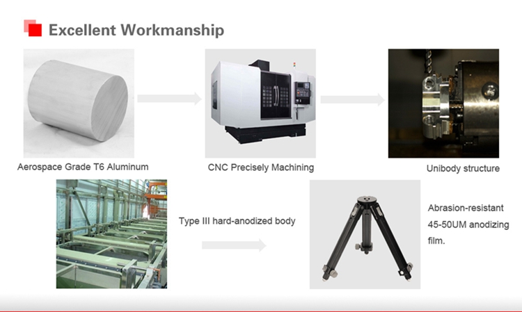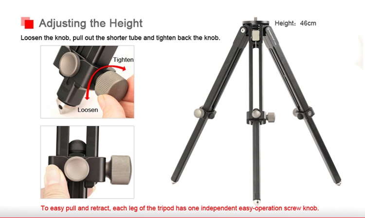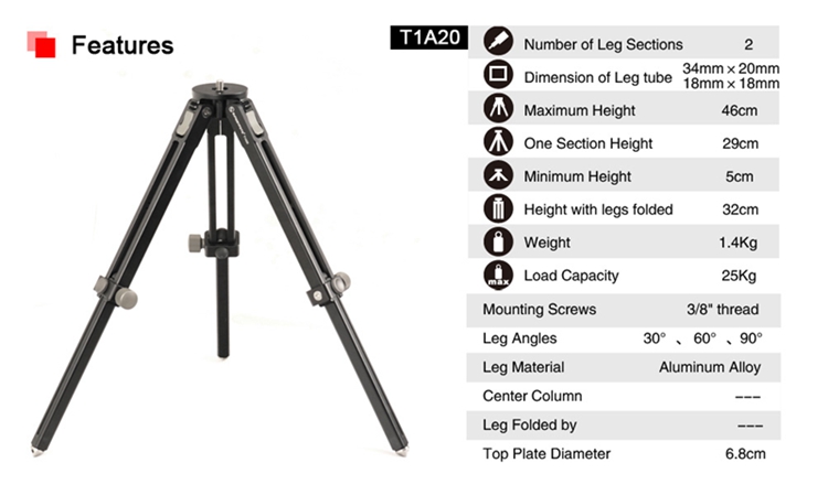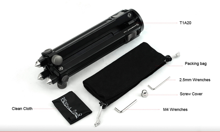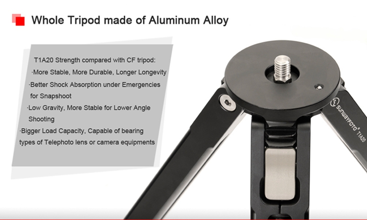 T1A20 Professional Tripod Aluminum Camera Tripod 2-Section Load 25KG For Camera Canon Telephoto Lens