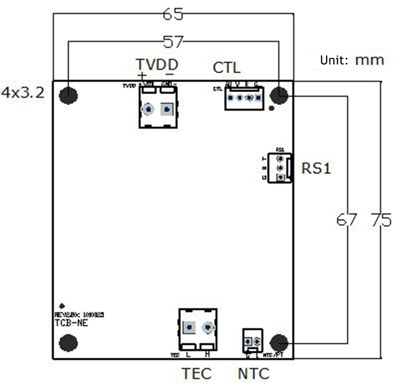 - Power supply voltage: 5V - 24V (Recommend standard voltages such as 5/7.5/12/15/24. The rated voltage of the TEC should be equal to or slightly higher than the supply voltage. If the rated voltage of the TEC is lower than the voltage, it is also acceptable to set the output ratio.)