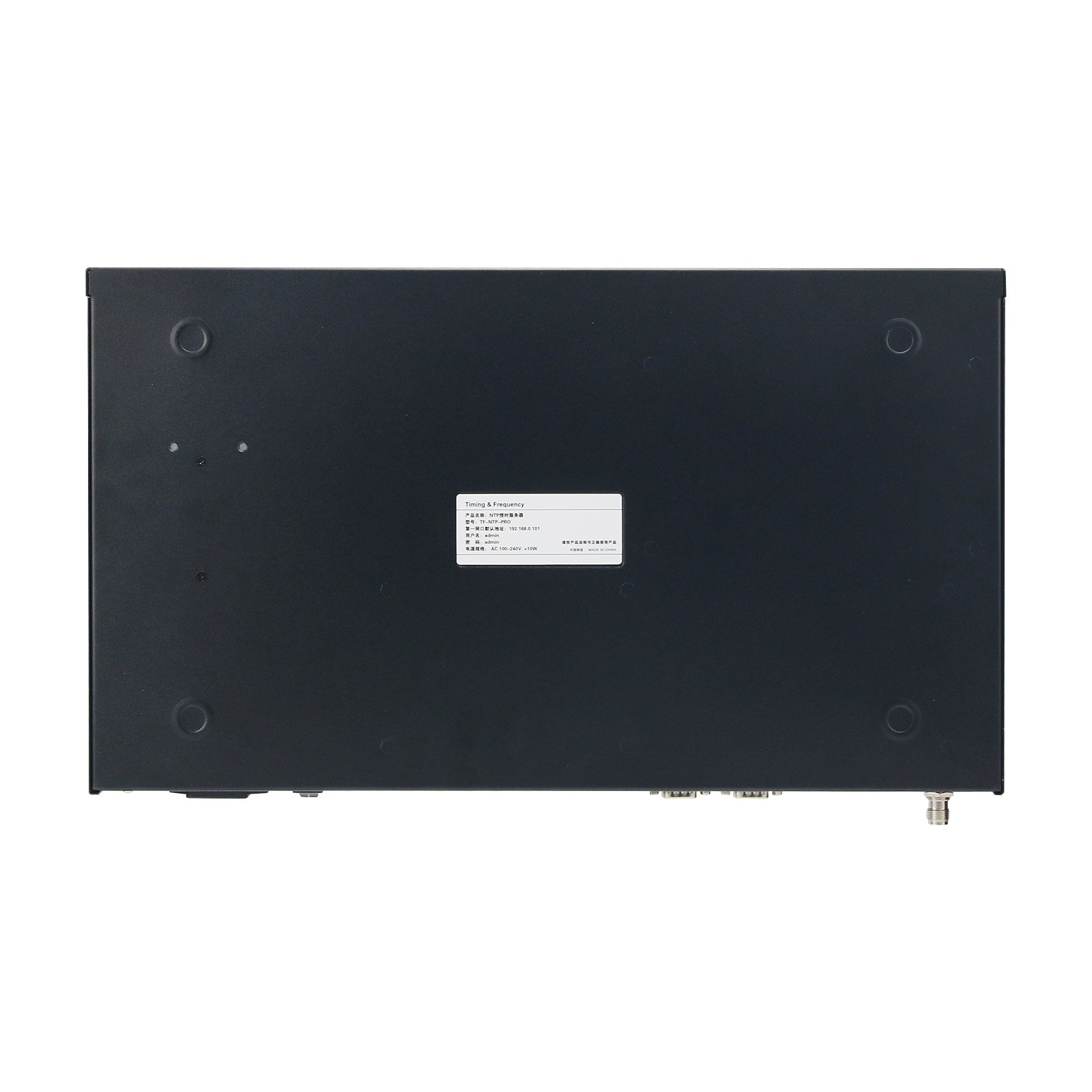 The NTP serer is in a 19-inch 1U chassis with rack mount ears for installation.