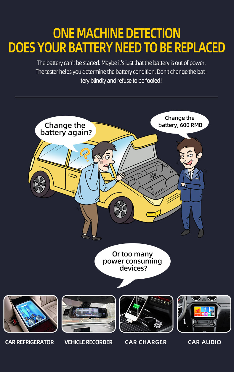 - Usage scope: All car lead-acid starter battery, including regular flooded, EFB, AGM tablet battery, AGM winding battery, GEL battery, WET, etc.