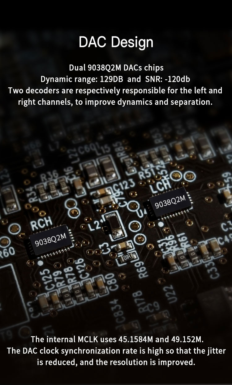- THD+N distortion degree: 0.005% (1K, dsd128)
