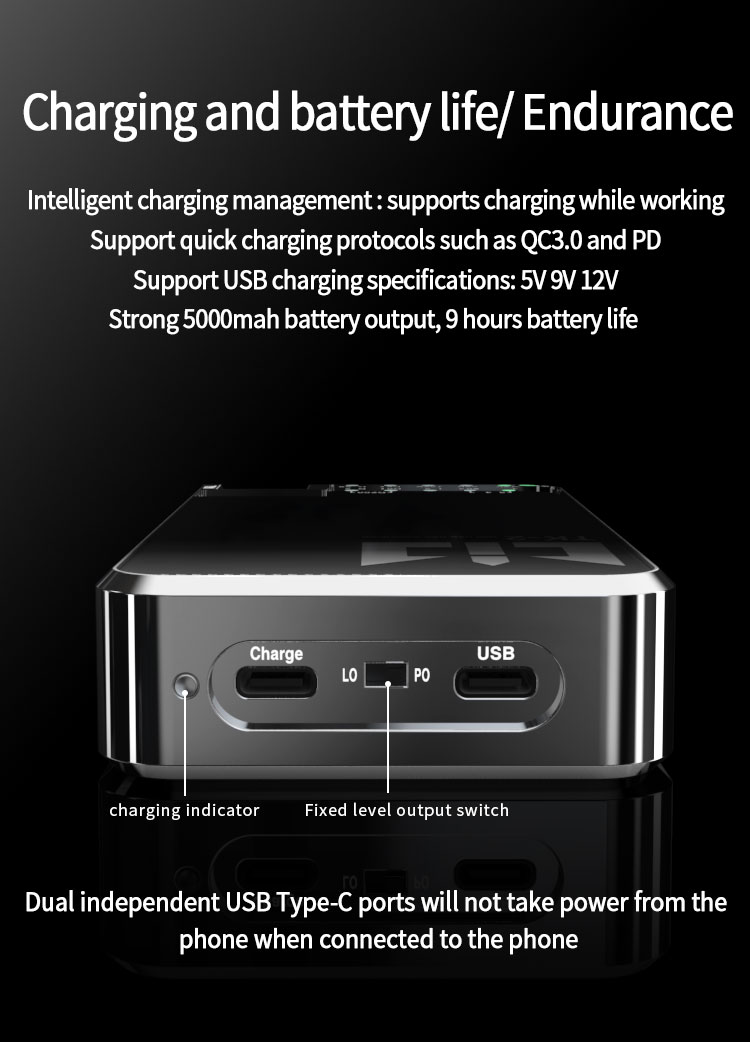 - Charging interface: TYPE-C supports QC3.0 or PD fast charging (can be used while charging)
