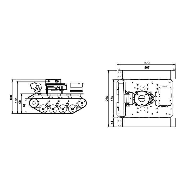 It boasts independent suspension shock absorption, all-aluminum alloy body. Size 270 x 270 x 160mm (LxWxH).