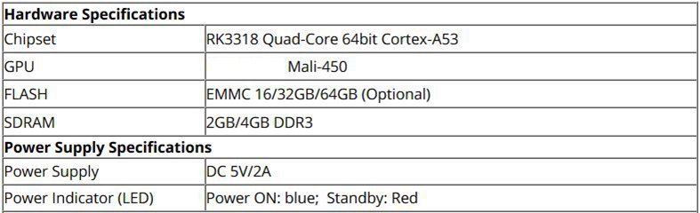 - CPU: RK3318 Quad-Core 64bit Cortex-A53