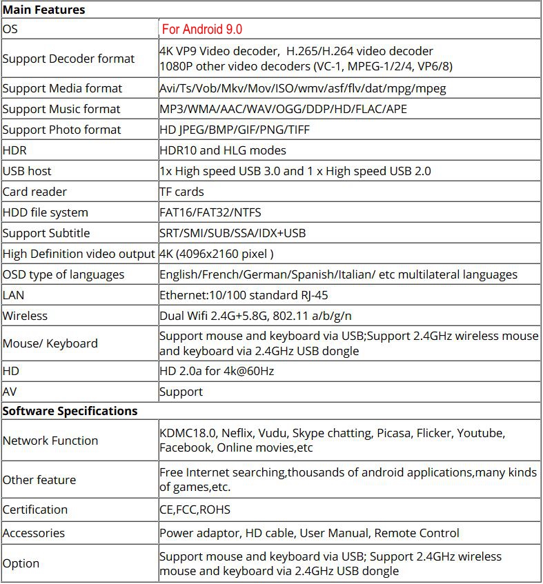 4K VP9 Video decoder, H.265/H.264 video decoder;