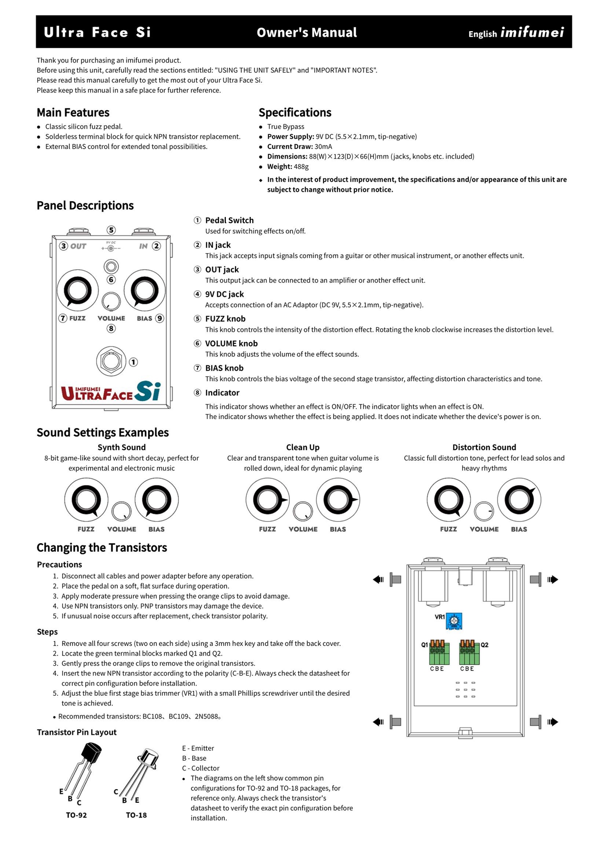 Ultra Face Si Electric Guitar Effects Pedal Fuzz Silicon Transistor Effector Replacement for FuzeFace