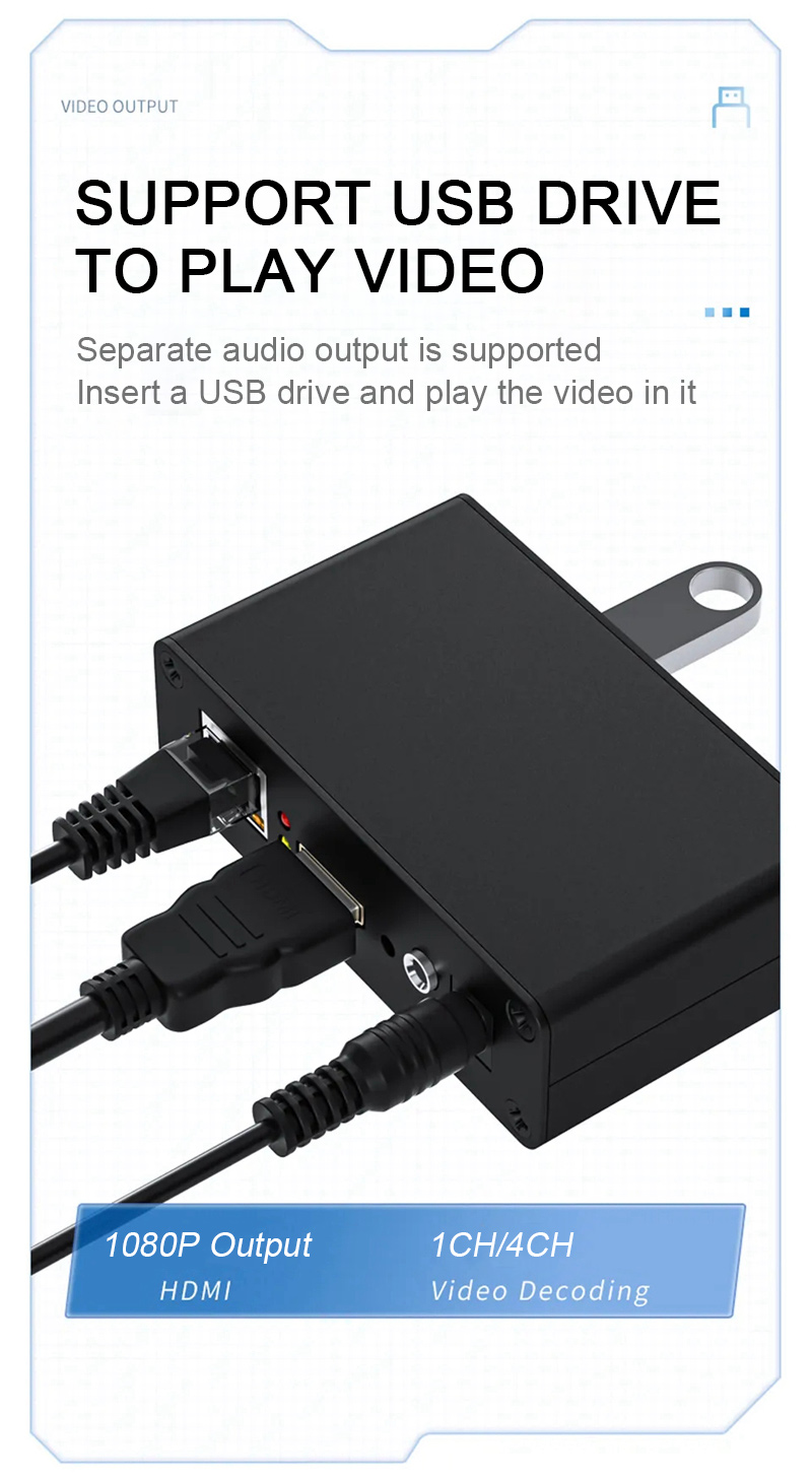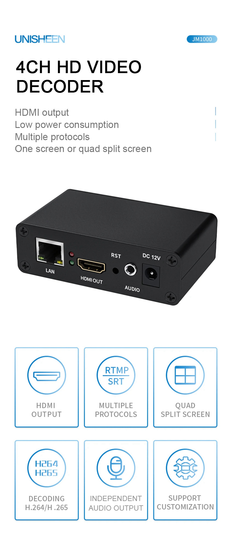 Unisheen JM1000 Video Decoder H.265 Decoder for RTMP Live Streaming 4K Video Transmission USB Drive