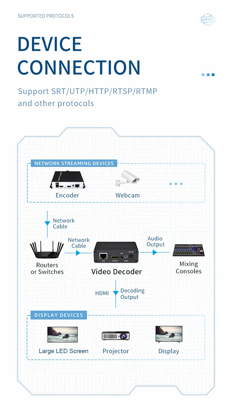 * Protocol: SRT/UTP/HTTP/RTSP/RTMP/HLS/FLV/UDP Multicast/Unicast