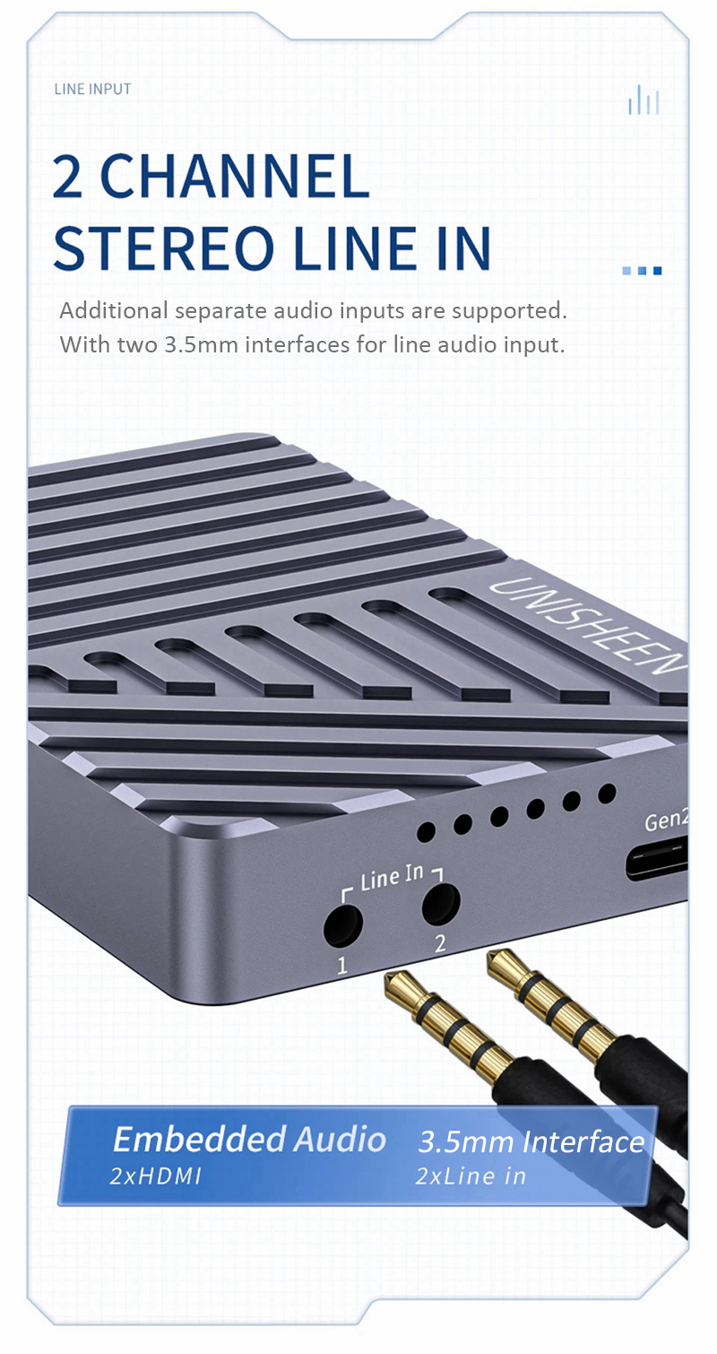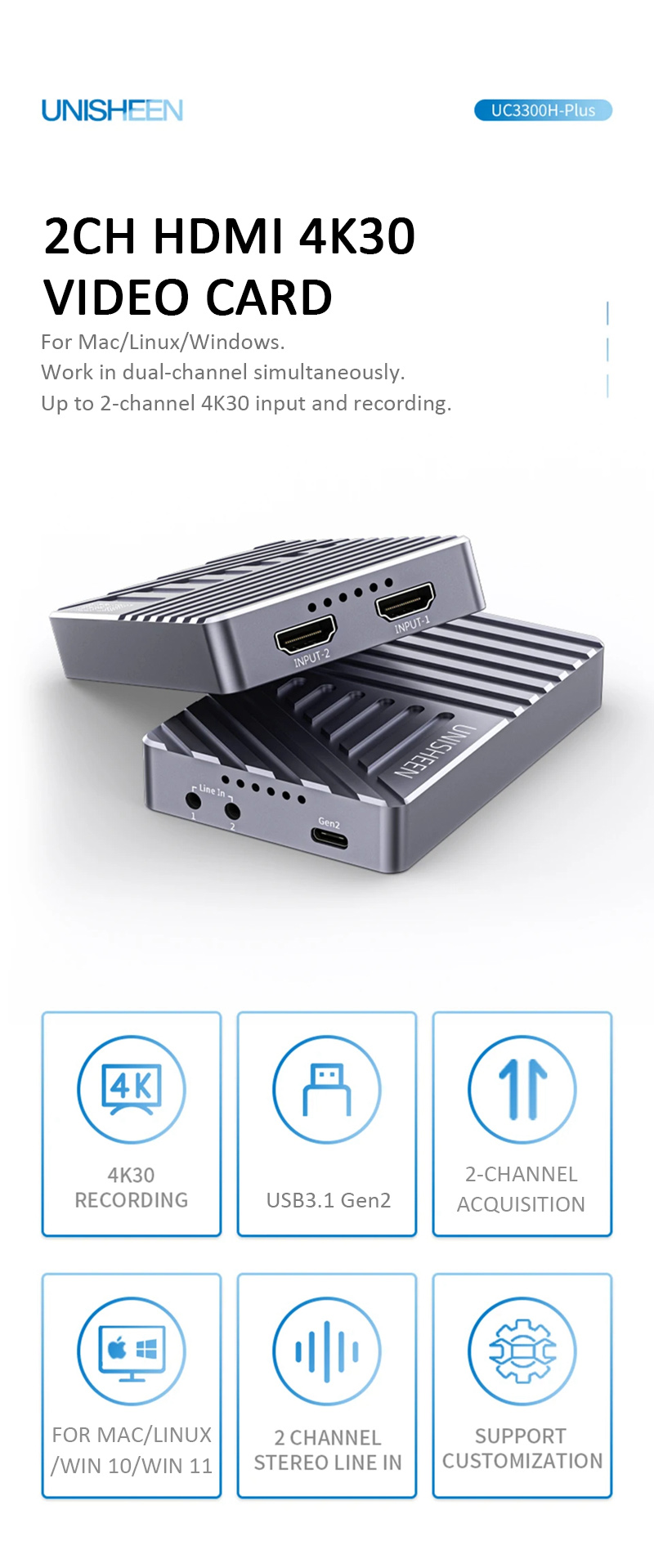 Unisheen UC3300H-plus Video Recorder Box Video Card Supports 4K 2CH Video Input for Game Streaming