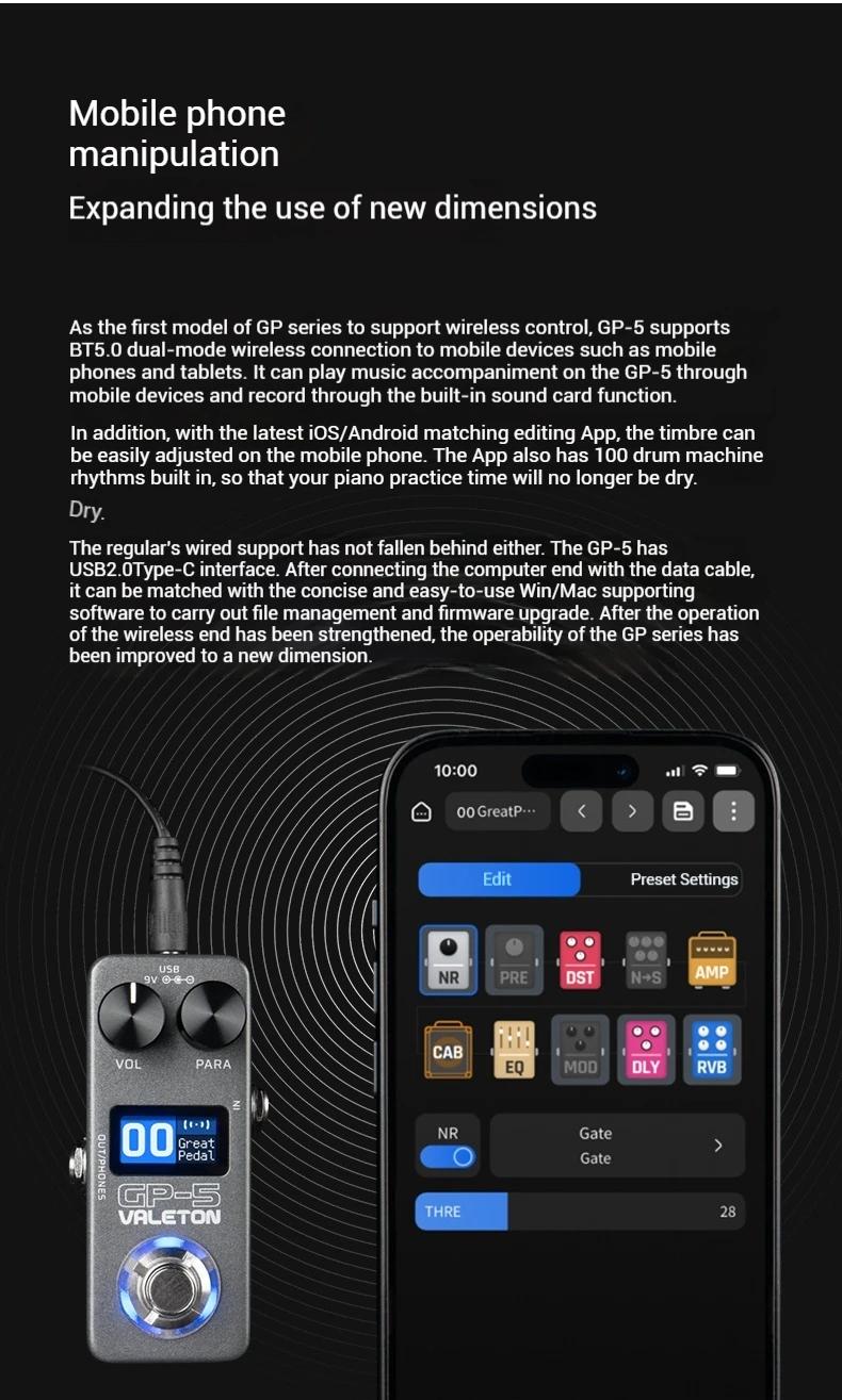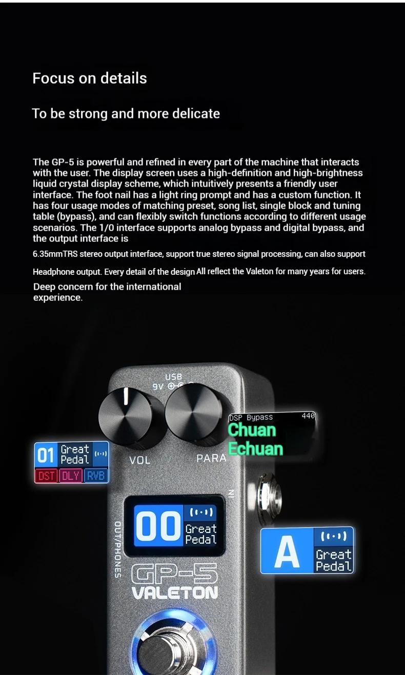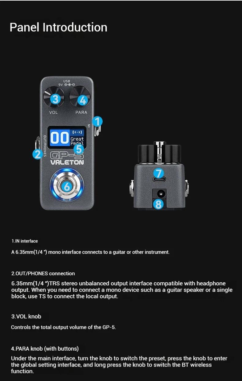 Valeton GP-5 Portable Electric Guitar Comprehensive Effects Pedal Bass Smart Sound Card Drum Recording