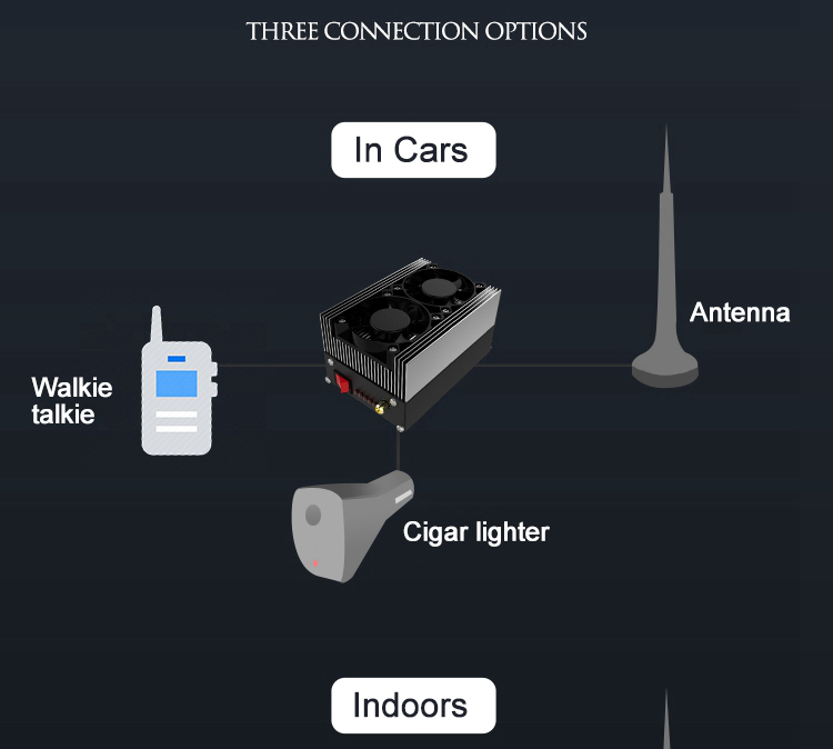- Three connection methods, convenient for use on cars, indoors and relay station