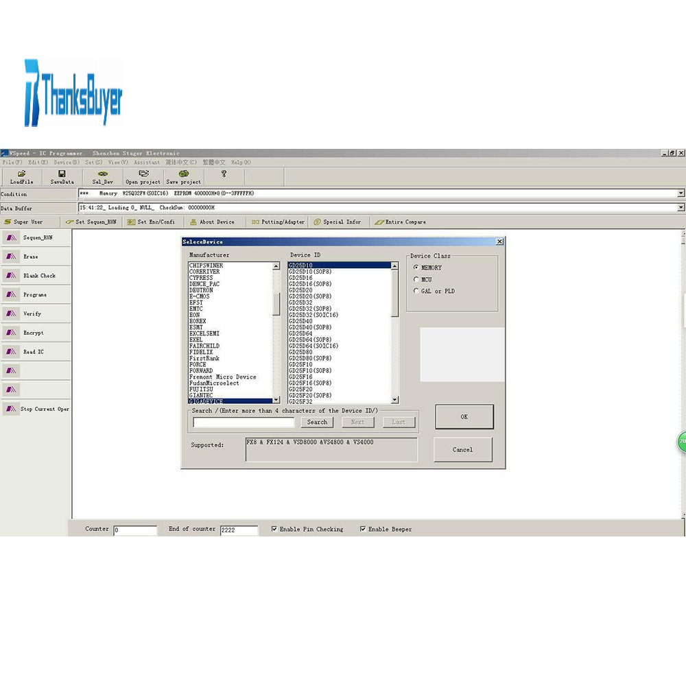 - For 25 SPI Flash: 25Qxx/25Xxx/25Txx/25Dxx/25Pxx/25Rxxxx/25Uxxxx/25Lxxxx...