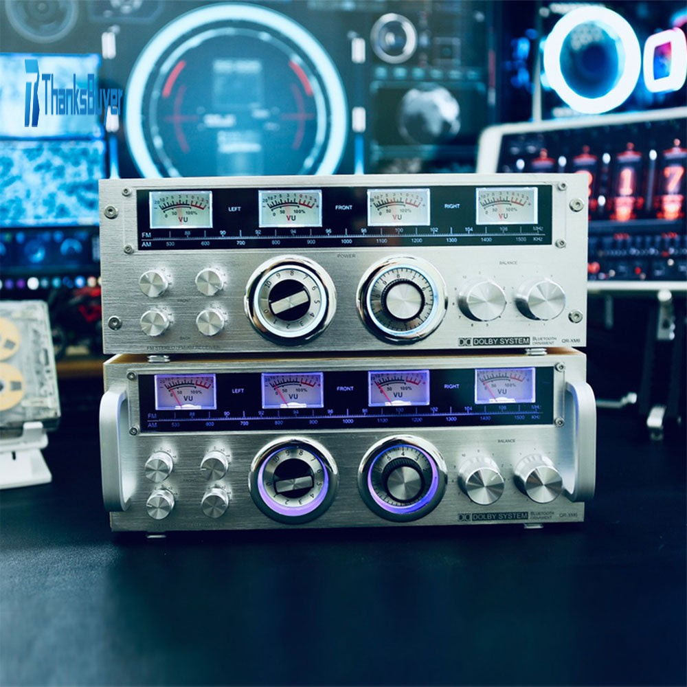 - The four small metal knobs on the left are for decoration. The two large metal knobs on the right are also decorative. There are two middle large knobs (one is the power switch, and the other is the VU meter sensitivity knob).