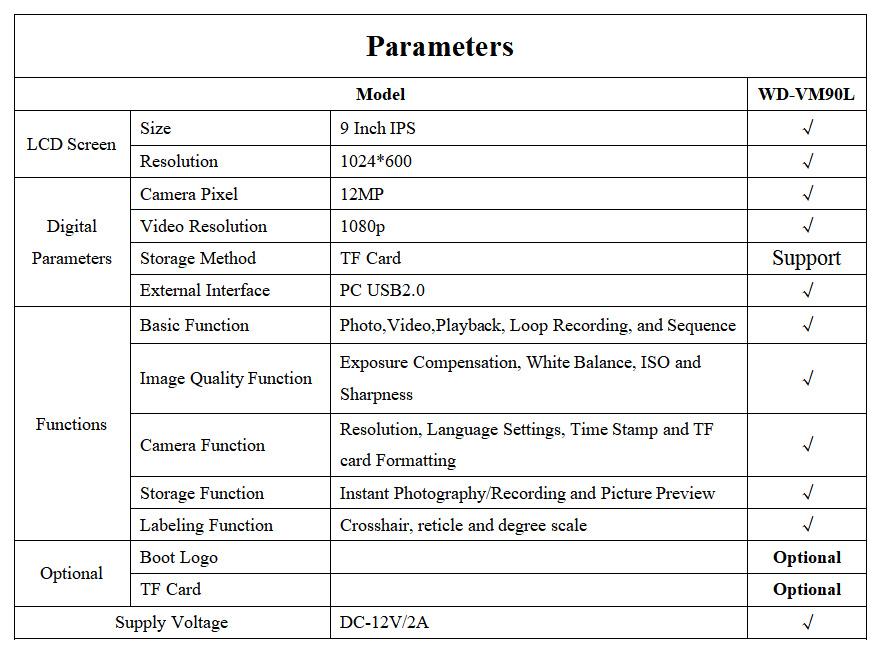 WD-VM90L is suitable for monocular and trinocular microscopes. It is compatible with C and CS interfaces. With a built-in HD camera, it can display observed objects directly on the HD screen.