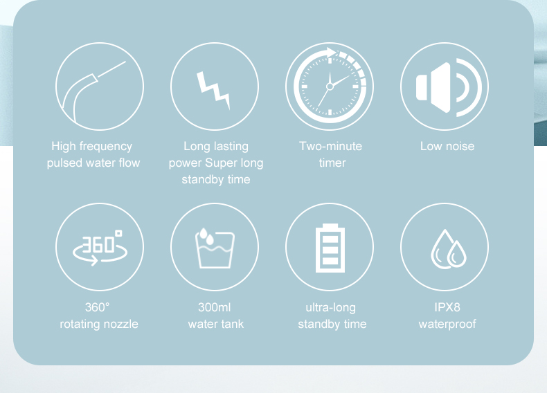 - IPX8 Waterproof: The IPX7 waterproof design prevents leakage and allows the dental flosser to be used safely for shower in the bathroom