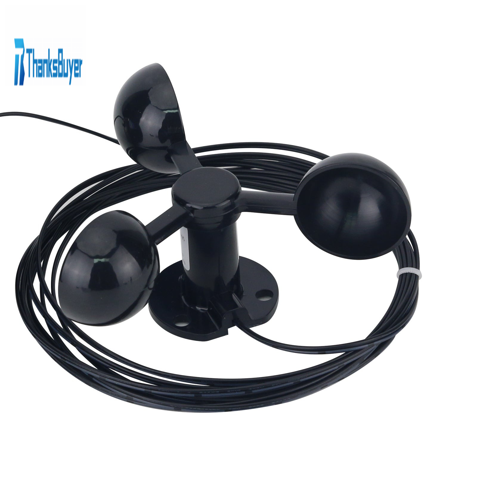 It is a wind speed sensor for power generation. When there is wind, it will rotate and generate a voltage that can drive a meter to display the wind speed.